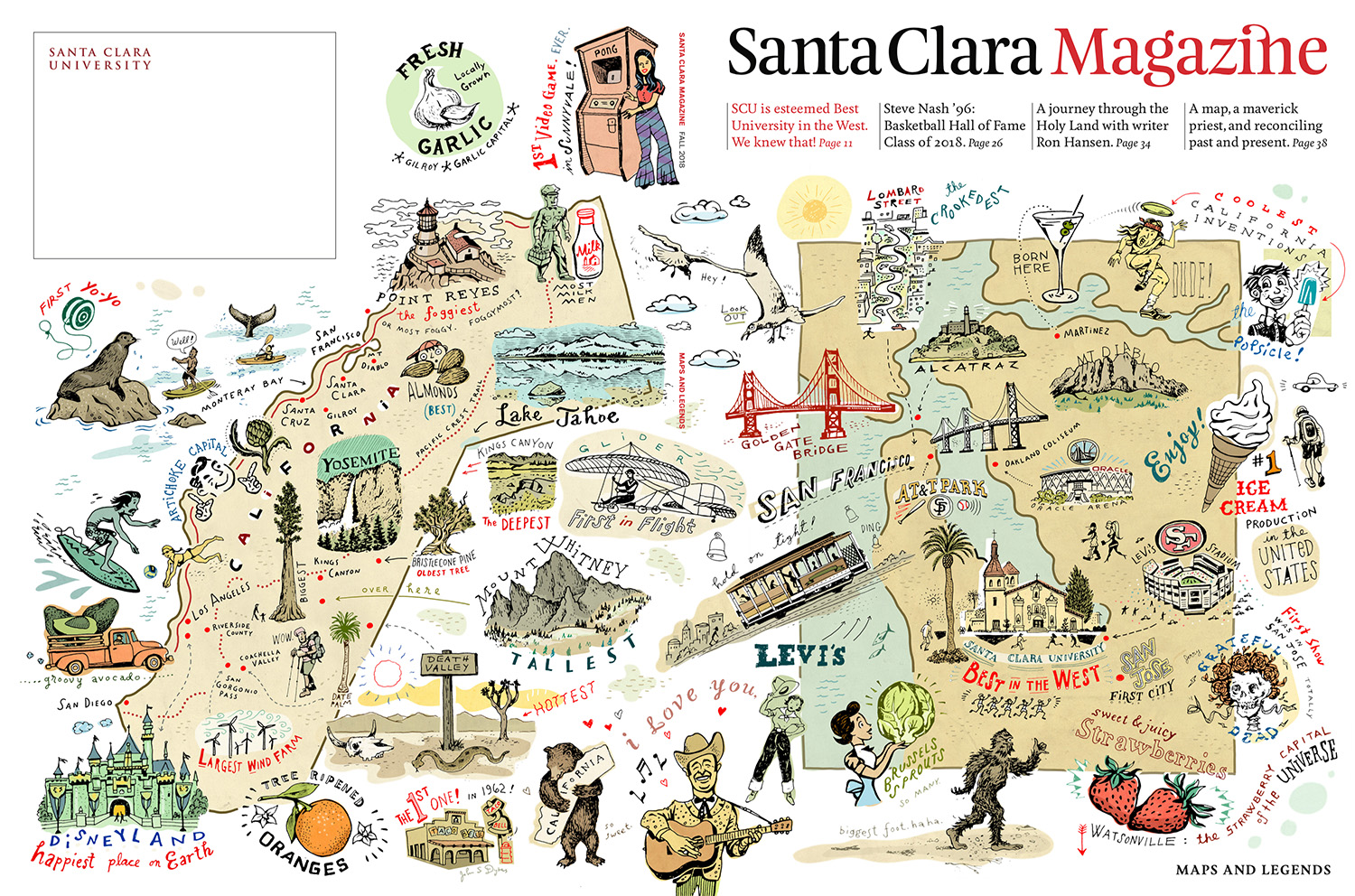 A stylistic trend that has been taking off as of late is something that RappArt agent Jodie Hein describes as the “Where’s Waldo” style: dense, winding illustrations jam-packed with details that you could definitely spend some time studying. “It’s a fun, eye catching, and effective style for infographics, maps, editorial stories and marketing materials”, says Jodie. While they are busy images, the compositions are thoughtful, often containing roads or paths to guide your eyes through the illustration.