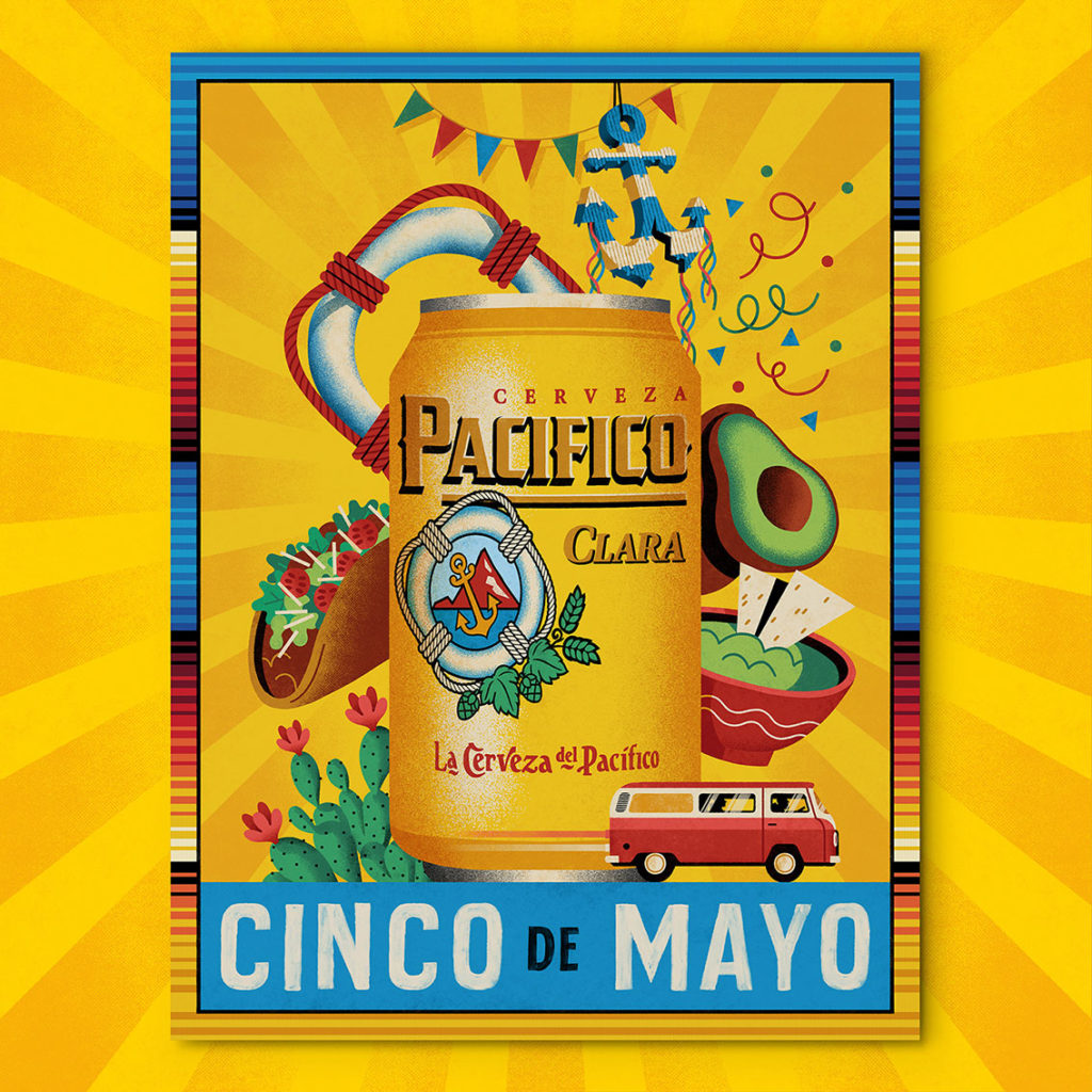 Daniel Diosdado was commissioned to design and illustrate the key art for print and animation for the Pacifico Beer campaign in celebration of Cinco de Mayo.