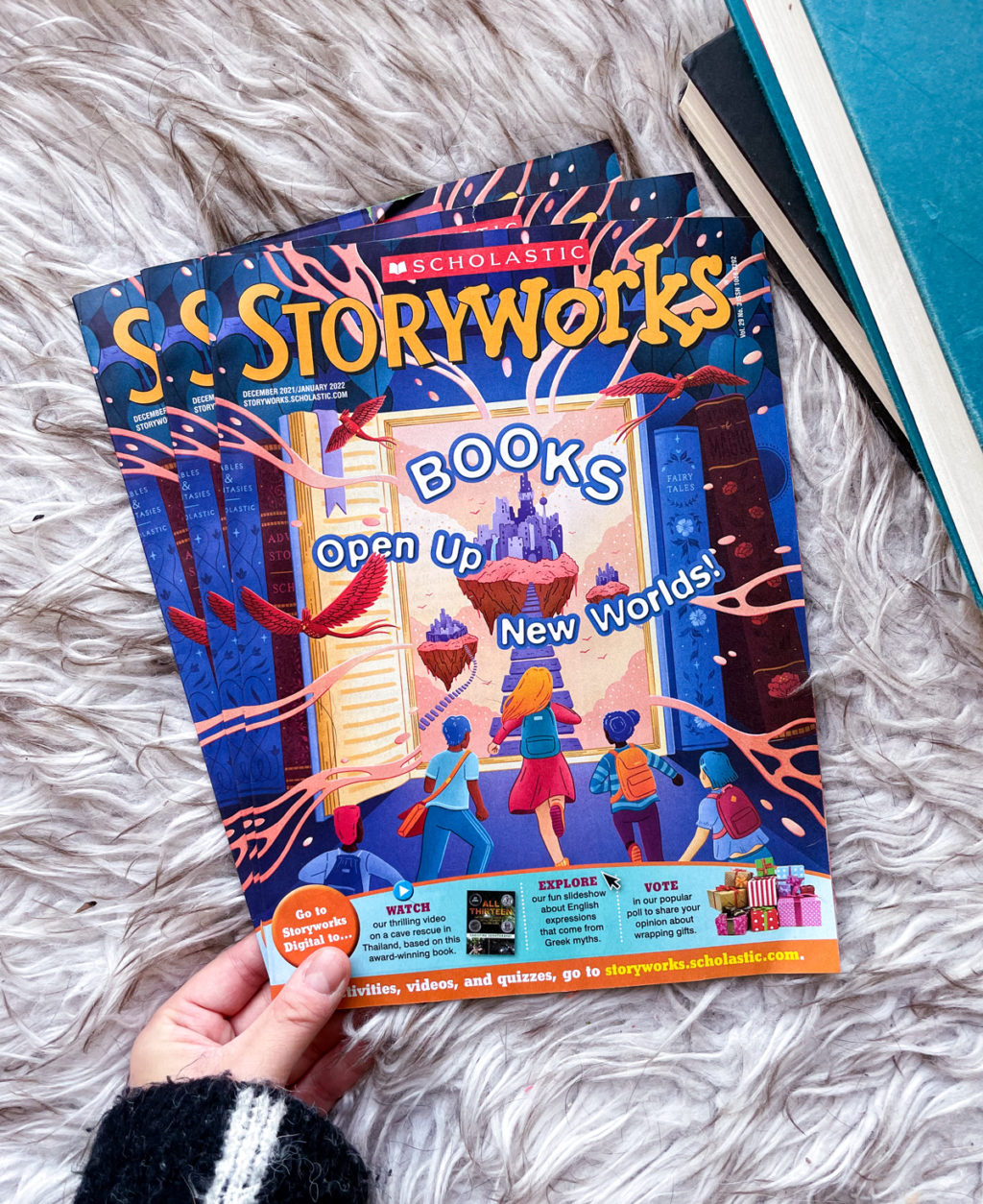 Loe Lee worked with Scholastic to create the cover of their December/January Storyworks issue.