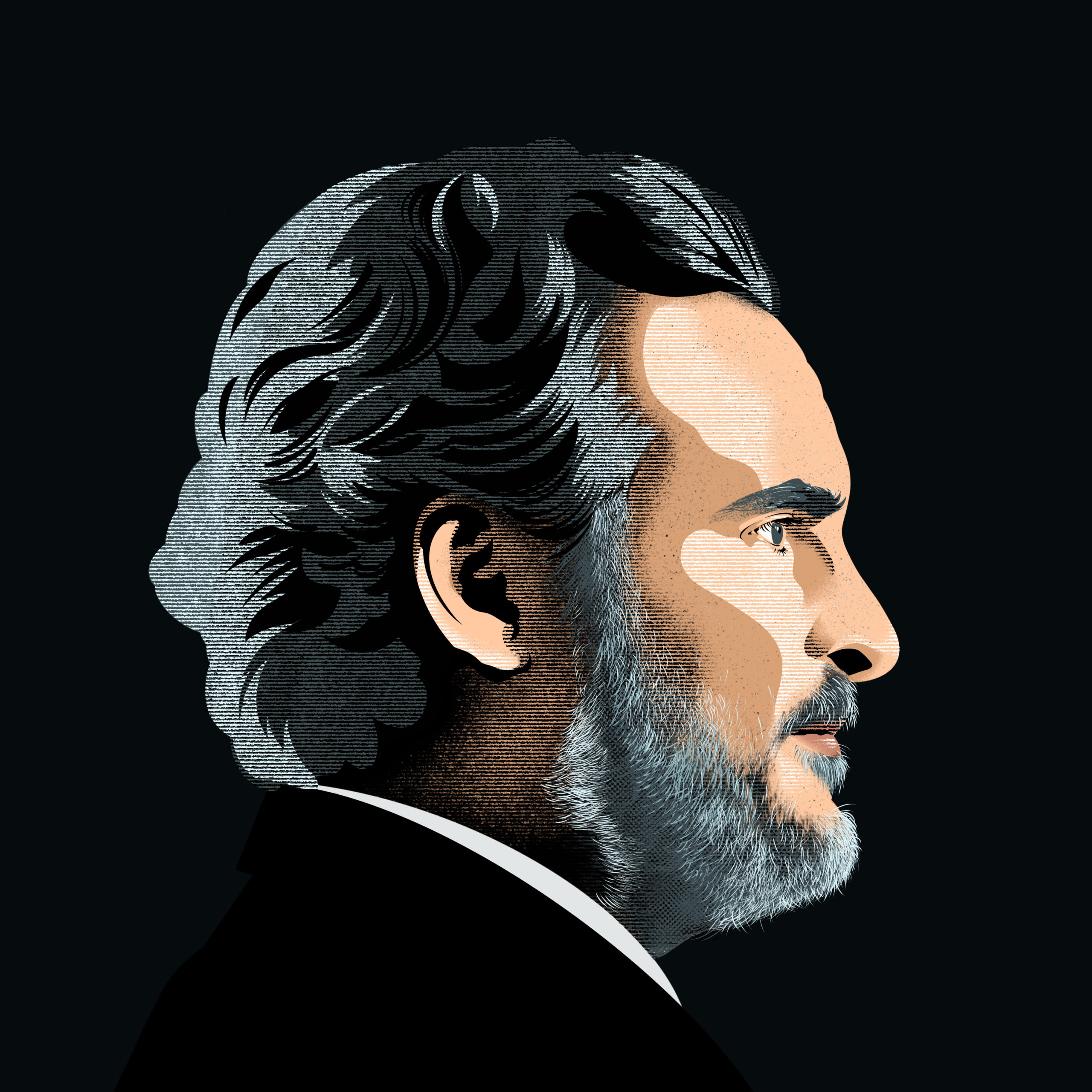 Jeffrey Smith was commissioned by The PennStater to illustrate their article about Muhammad Ali’s visit to Penn State in 1969, “The Champ is Here.” This illustration has now been selected to be part of the Society of Illustrators.