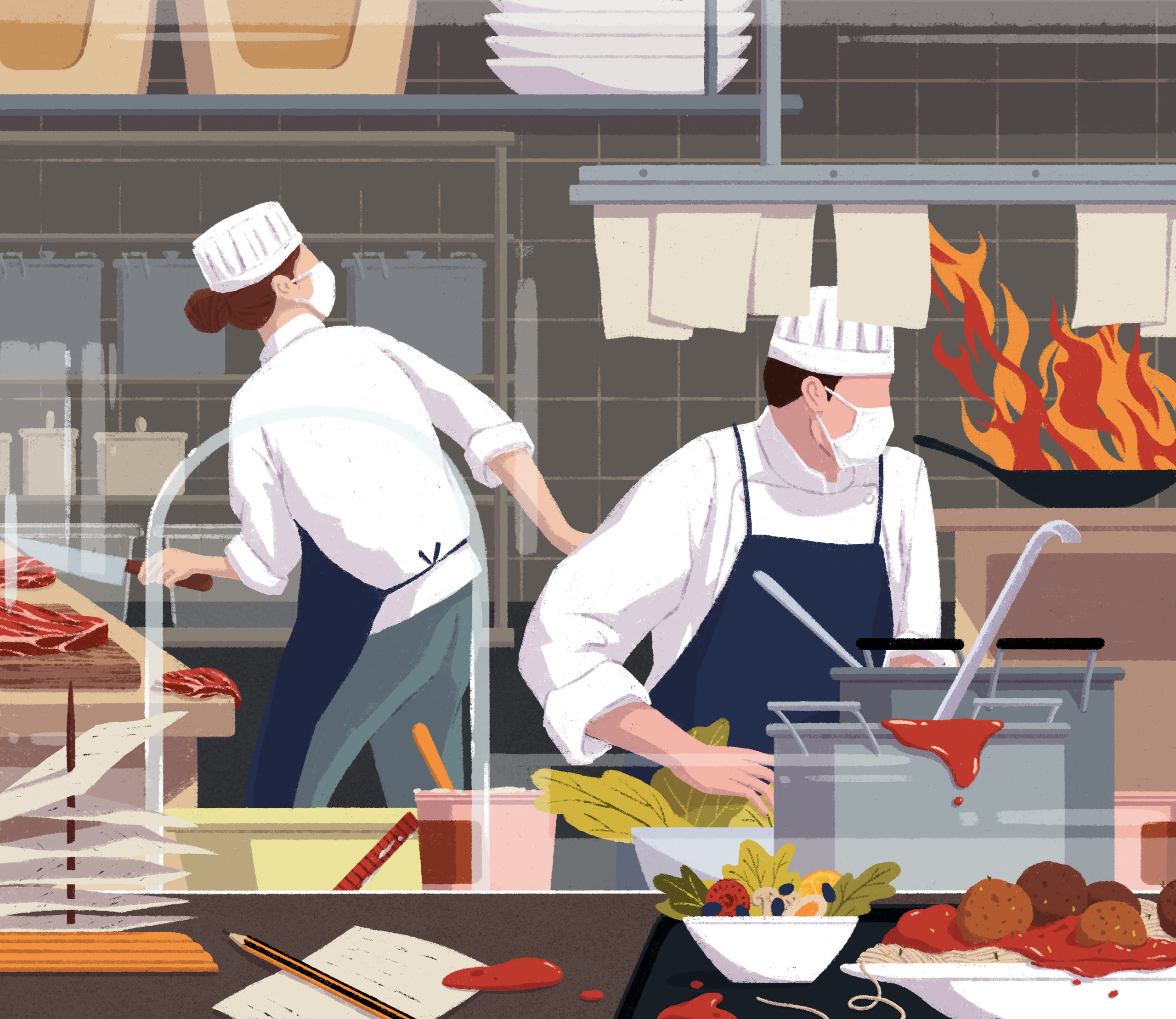 Phil Foster was commissioned by The Wall Street Journal to illustrate “Coping with the COVID pandemic, and the balance of necessary mandates/laws and their imposition on our freedom”.