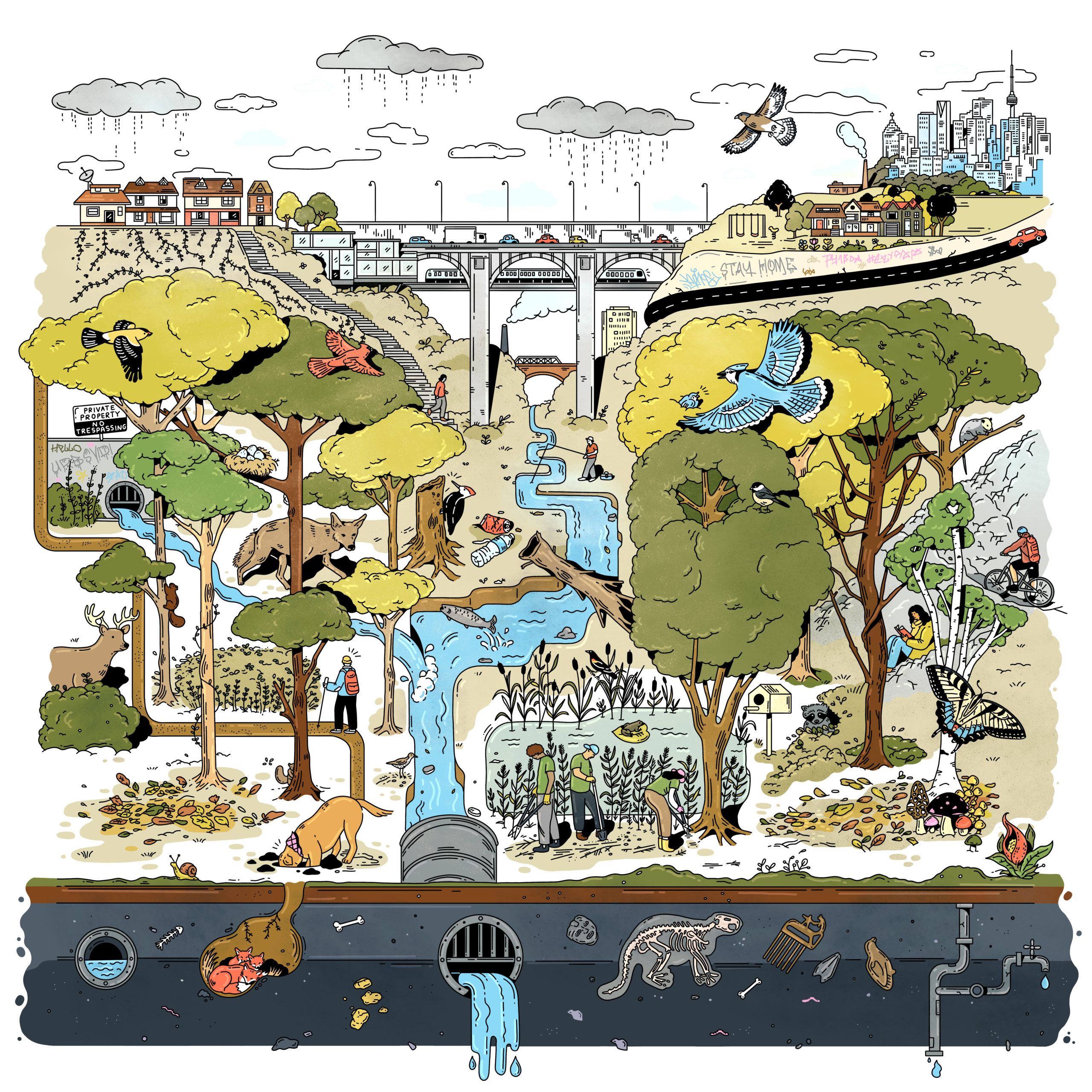 Kathleen Fu illustrated “Toronto Ravines” for The Globe and Mail.