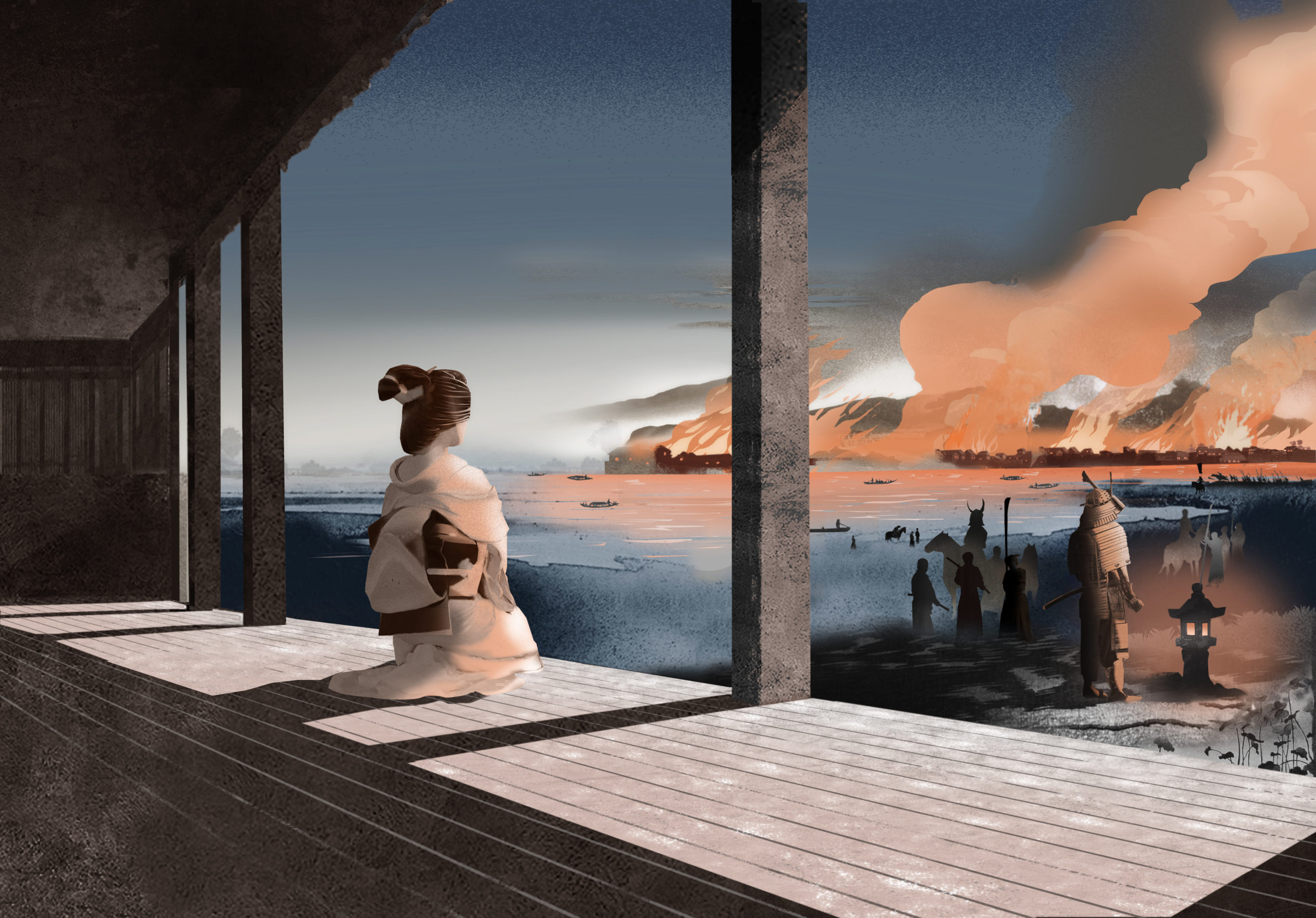 Eva Vázquez illustrated a story for a Madrid magazine titled, “Japan, A Story of Love and War”.