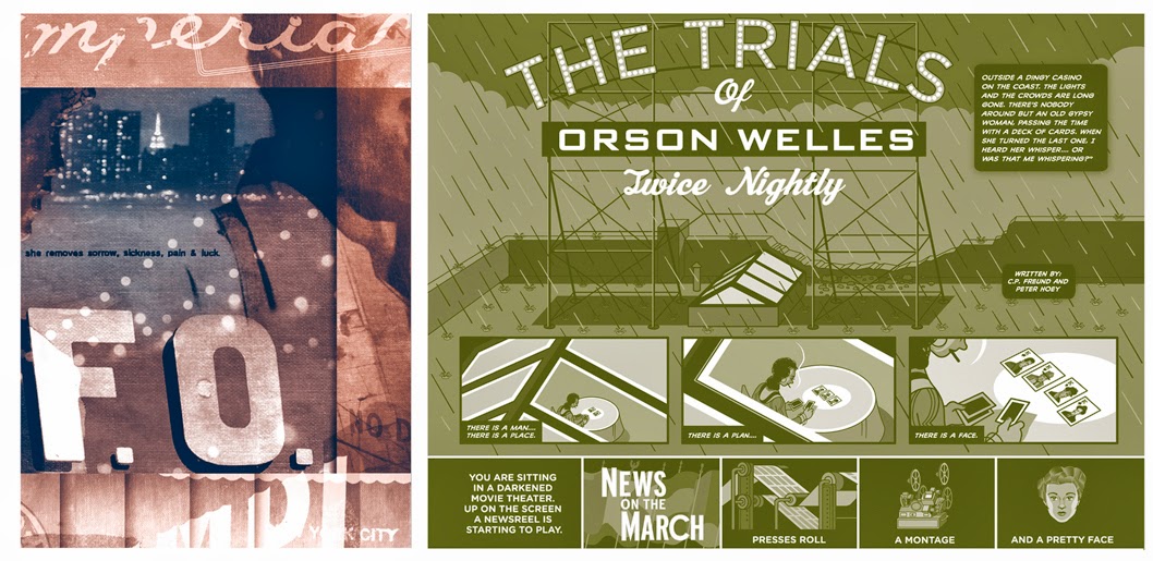 Most people know Peter and Maria Hoey as one of the most accomplished info-graphic studios in the world. They have also won awards from The Best American Comics and American Illustration for their graphic novel work as Coin-Op Studio. Peter and Maria, have been publishing their own comic books since 2008, perfecting their skills in storytelling and concept-driven narratives. They just released their latest issue: “Coin-Op #5: Plastic Faces,” a magnificent 36-page collection of seven stories that reflect their interests in film and music. This past weekend, P+M had their first opportunity to showcase their latest masterpiece at MOCCA, and as you can imagine, it was a huge success! We’ve devoted a unique portfolio to their comic work–please take a look here.