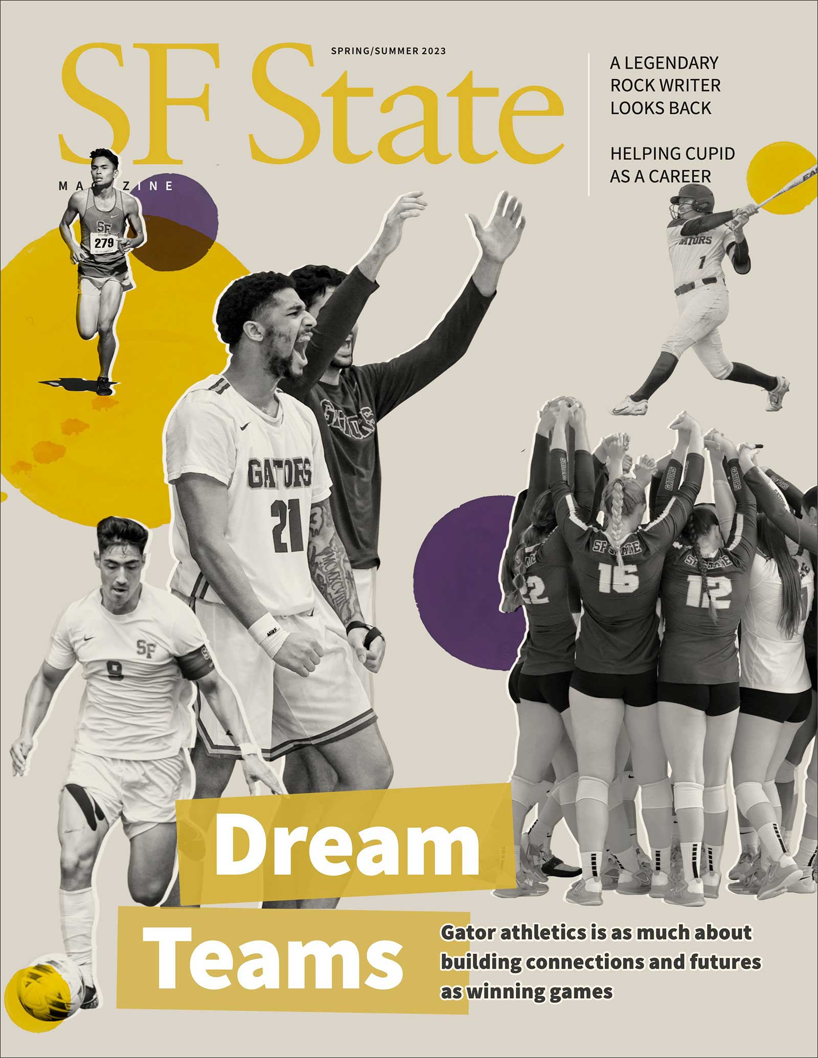 Valerie Chiang‘s photo-illustration made an eye catching design for SF State Magazine‘s Spring/Summer cover, telling a story of the sense of community in the University’s athletics department.