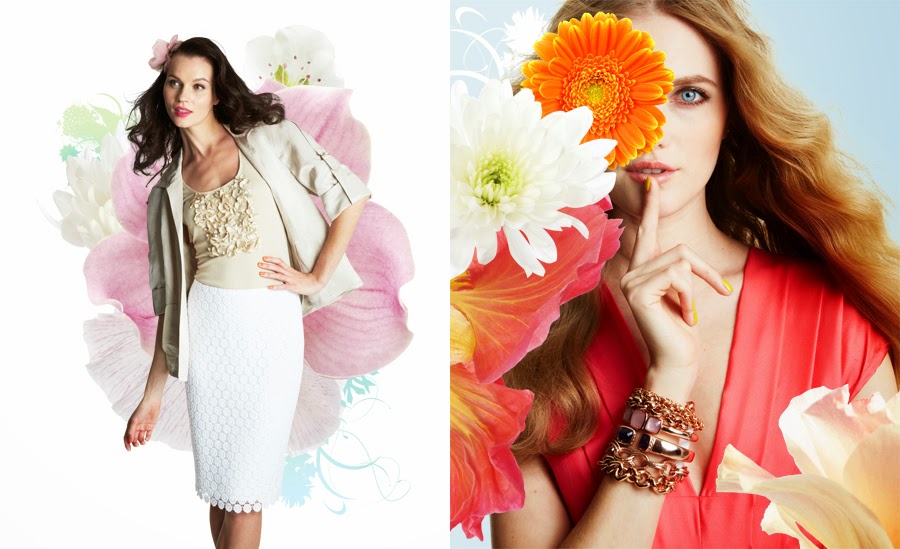 The concept behind both projects was to develop as series of photo montage images that seamlessly combined fashion shots with an array of floral arrangements. Sean’s challenge was to create compelling visuals in his style without altering any of the fashions themselves. The following catalogue illustrations demonstrate Sean’s singular talent.