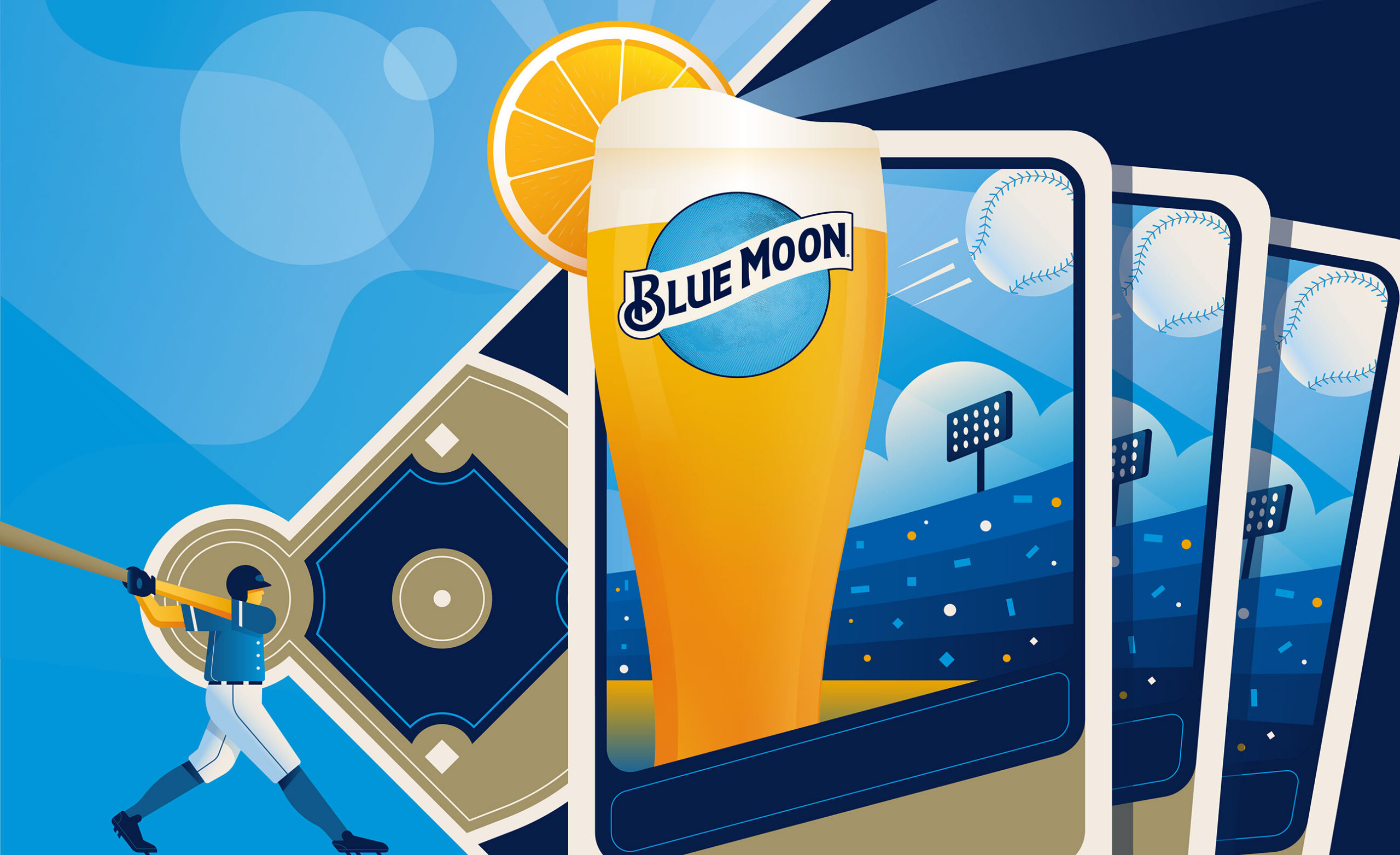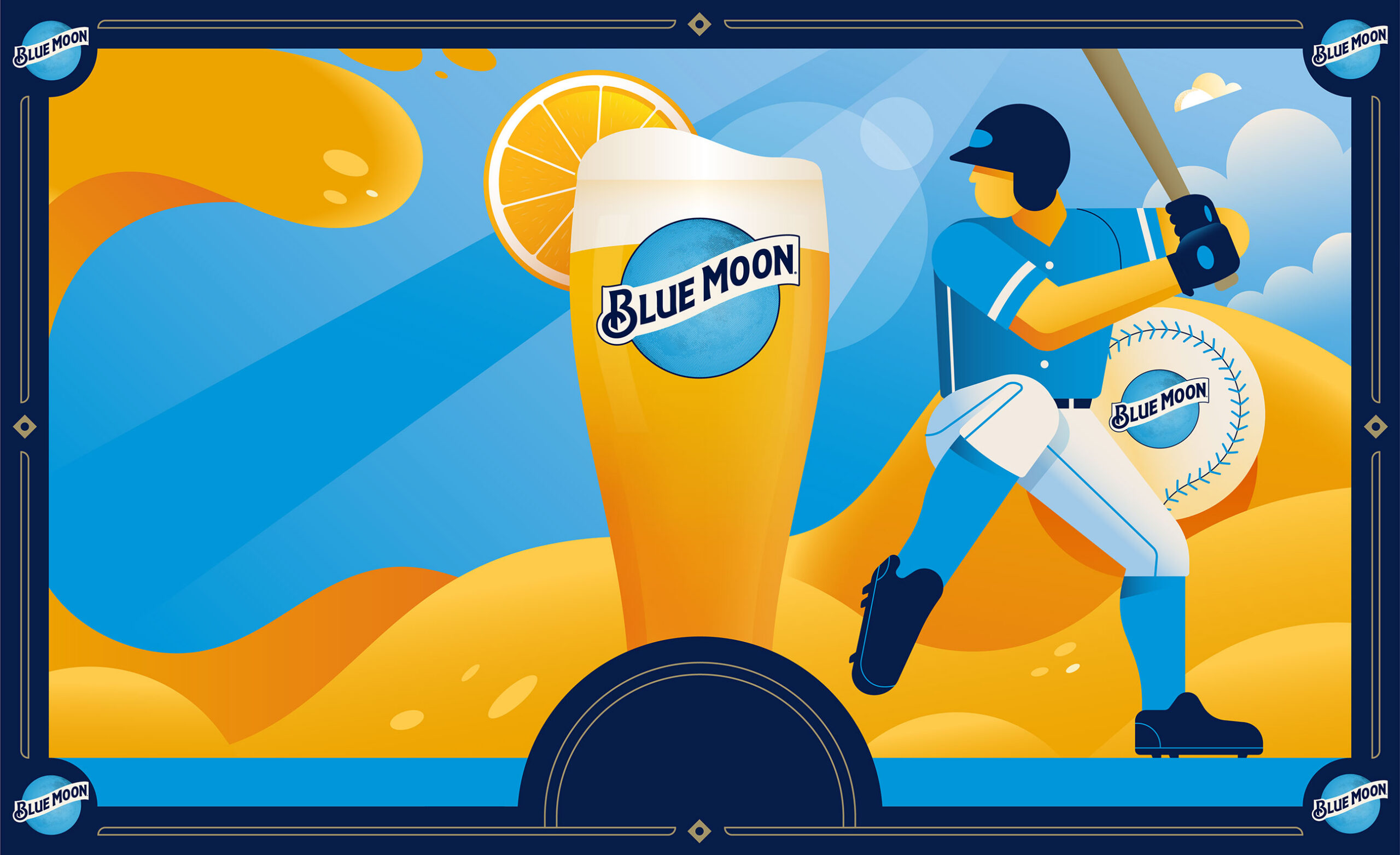 Aldo Crusher worked with Arc Worldwide on key visuals for a Blue Moon campaign focused on summer baseball viewing for both national and alliance baseball programs. The artwork was inspired by baseball card designs and was used in print and OOH.