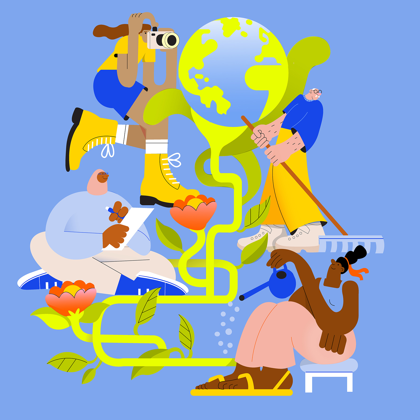 Ellice Weaver created these illustrations to advertise the Greenhouse Scholars 2023 Summer Symposium. Greenhouse Scholars is a program that supports under-resourced college students to increase rates of graduation and career success. Their annual symposium features a lineup of empowering speakers and fosters community engagement for scholars.