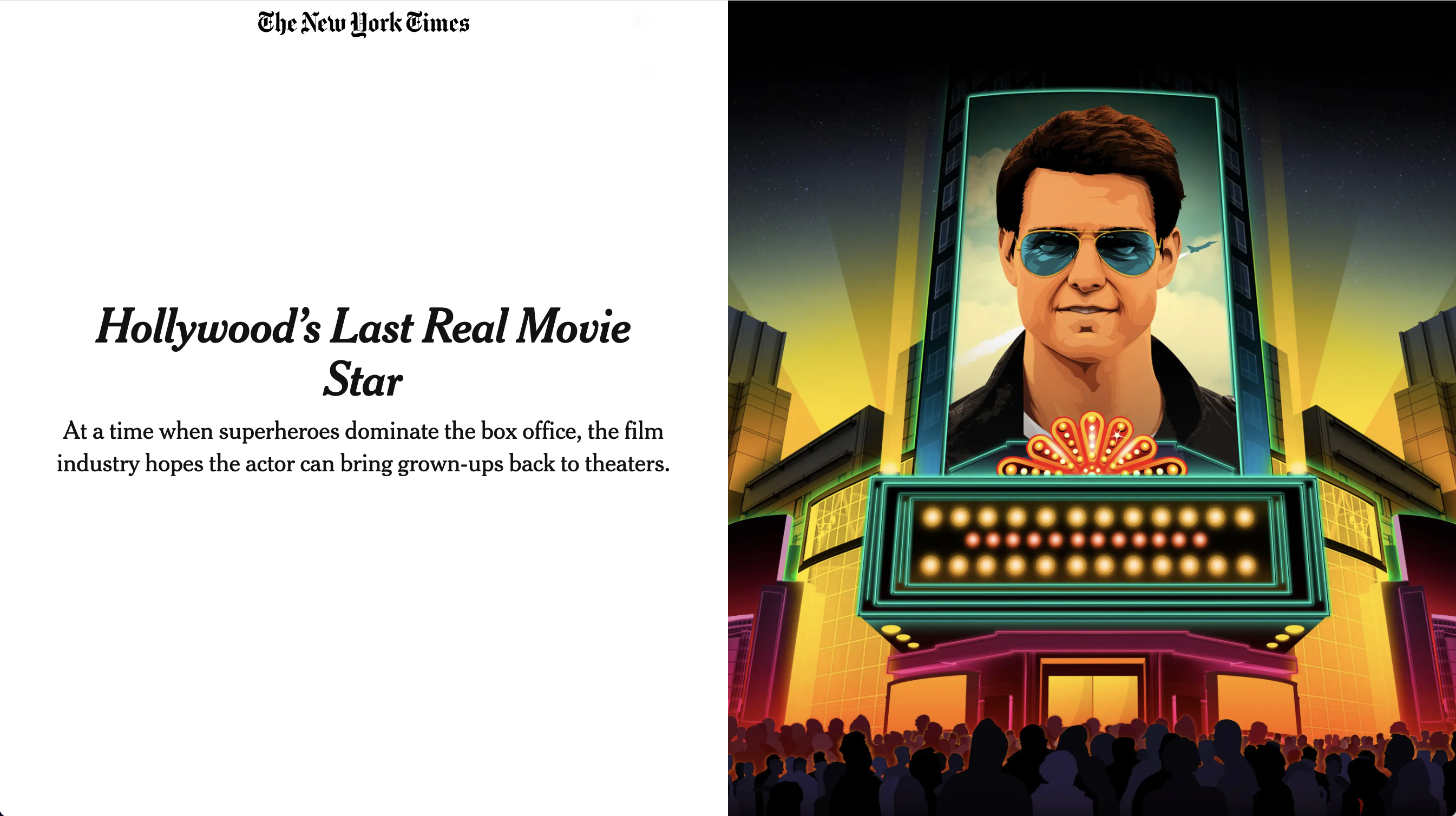 Taylor Callery illustrates The New York Times article, Hollywood’s Last Real Movie Star.