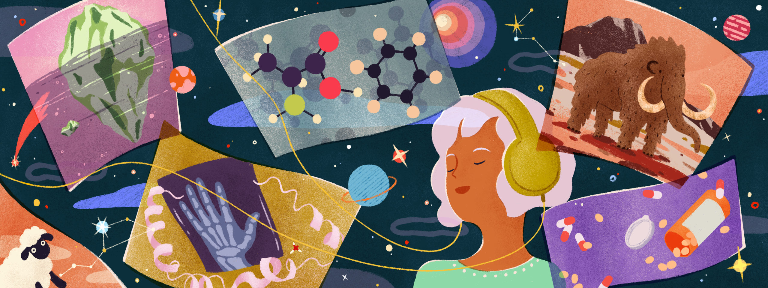 Jessie Lin was commissioned to provide an illustration for Knowable Magazine’s Season 2 Podcast. Jessie’s illustration highlights topics discussed during this season such as the science of dreams, the search for extra-solar planets, and the quest to treat depression.
