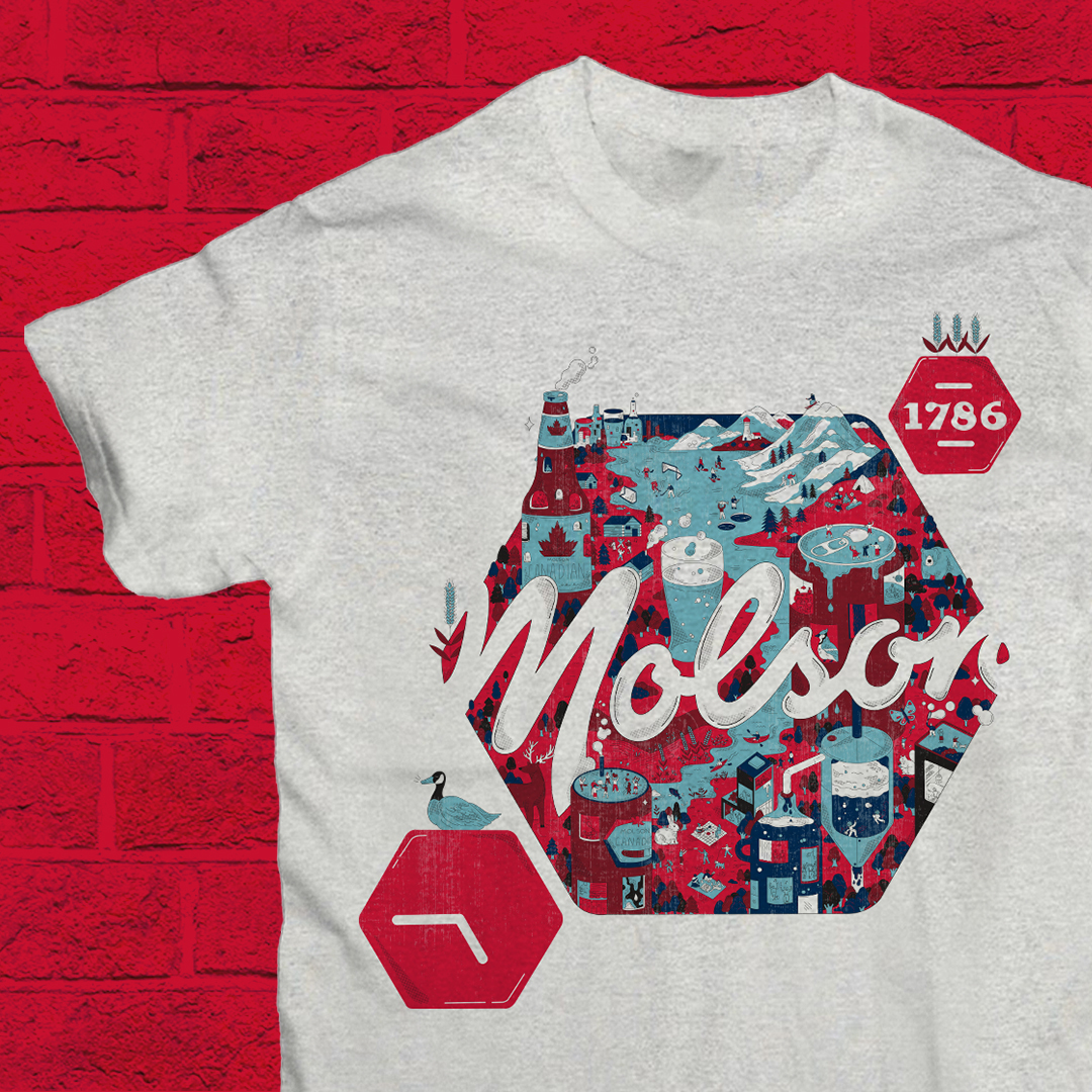 Kathleen Fu collaborated with Molson Coors Beverage Company on a limited edition, vintage-inspired t-shirt design. The t-shirt is one of four designs created by local Canadian artists, and the details of Kathleen’s illustration represent elements of Canadian culture and pastimes.