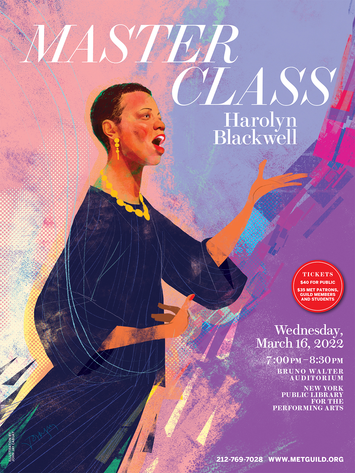 John Jay Cabuay was commissioned to illustrate an advertorial for Opera News featured in The Metropolitan Opera Guild. This advertorial is for their Master Class series, featuring a portrait of American lyric coloratura soprano Harolyn Blackwell.