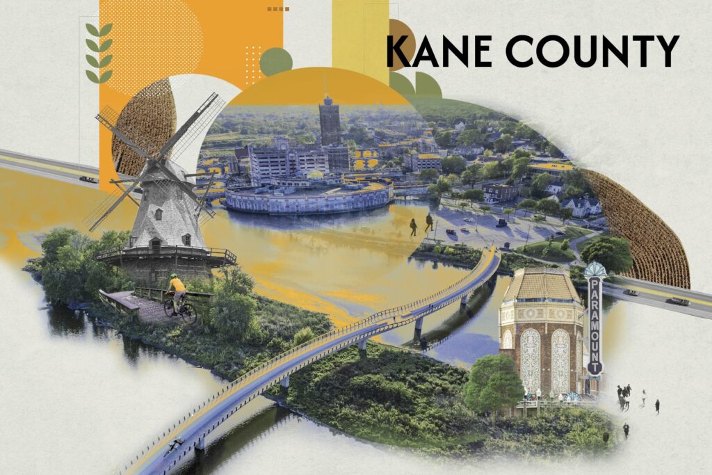 Nadia Radic was commissioned by CMAP (Chicago Metropolitan Agency for Planning) to illustrate a series of postcards used as promo material for Chicago’s State of the Region event this Fall. Each postcard features a collage of landmarks for a different county in and around Chicago. The event celebrated the launch of The Century Plan, CMAP’s long-term vision for a better, stronger future for northeastern Illinois.
