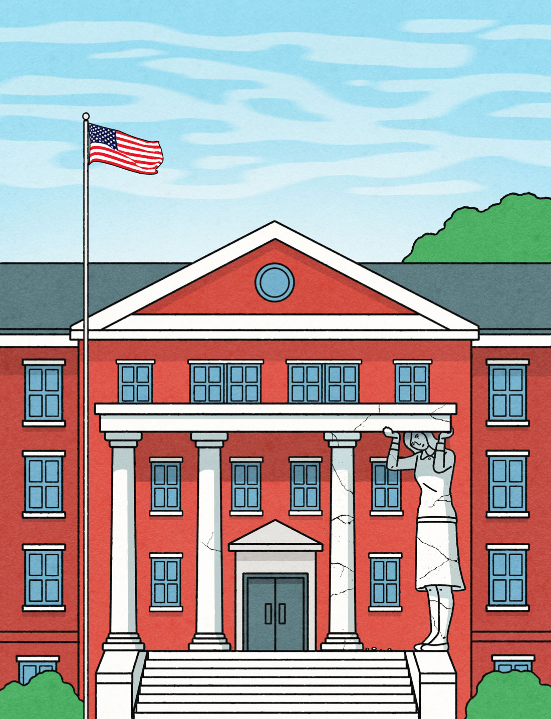 Dan Page illustrated a series for Philadelphia Magazine’s Annual Education Feature about the pressures of teaching in 2025. Teachers face challenges from every direction with funding fights, book bans, political tension, pandemic learning loss, and the tech and AI takeover.