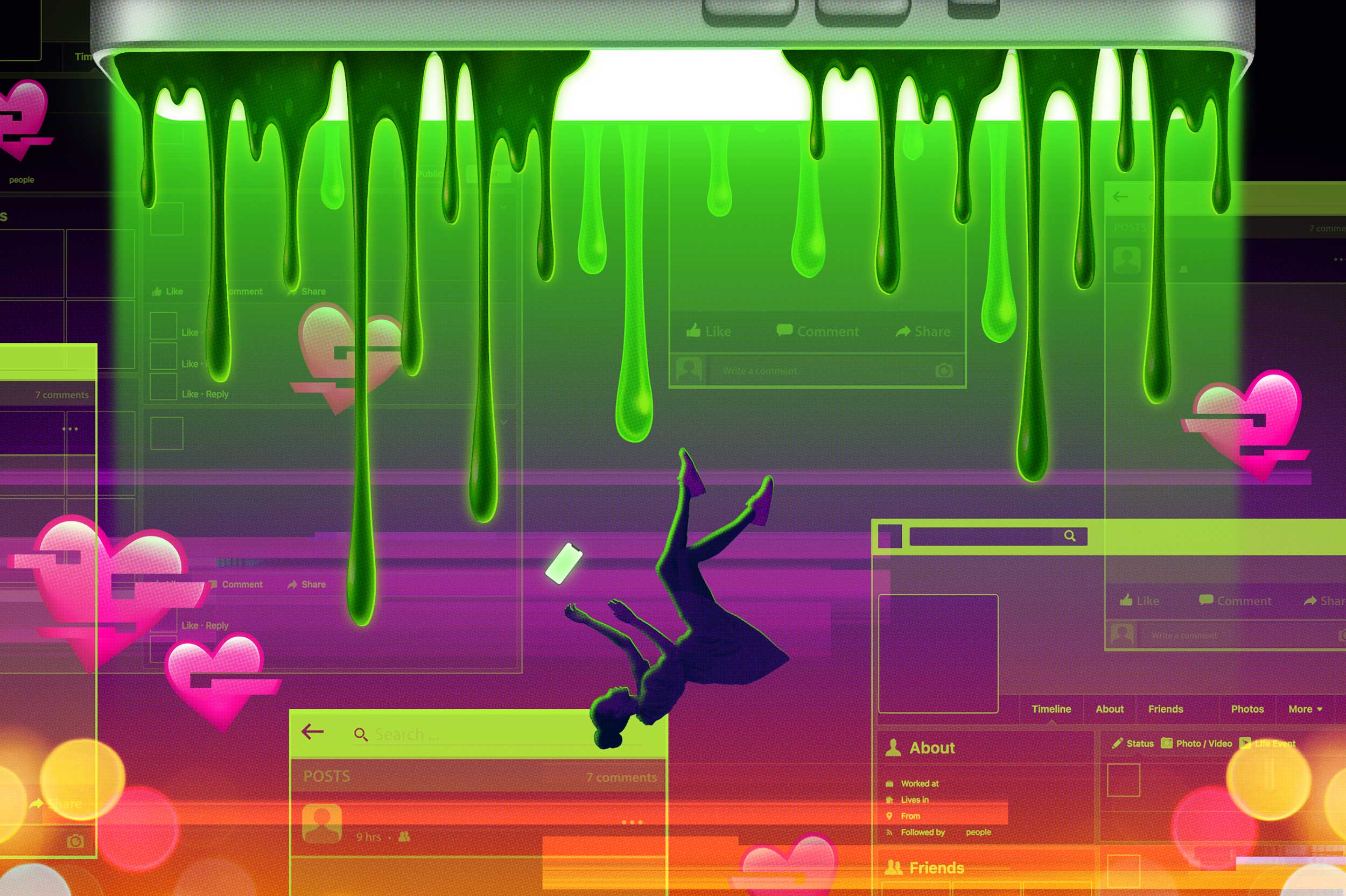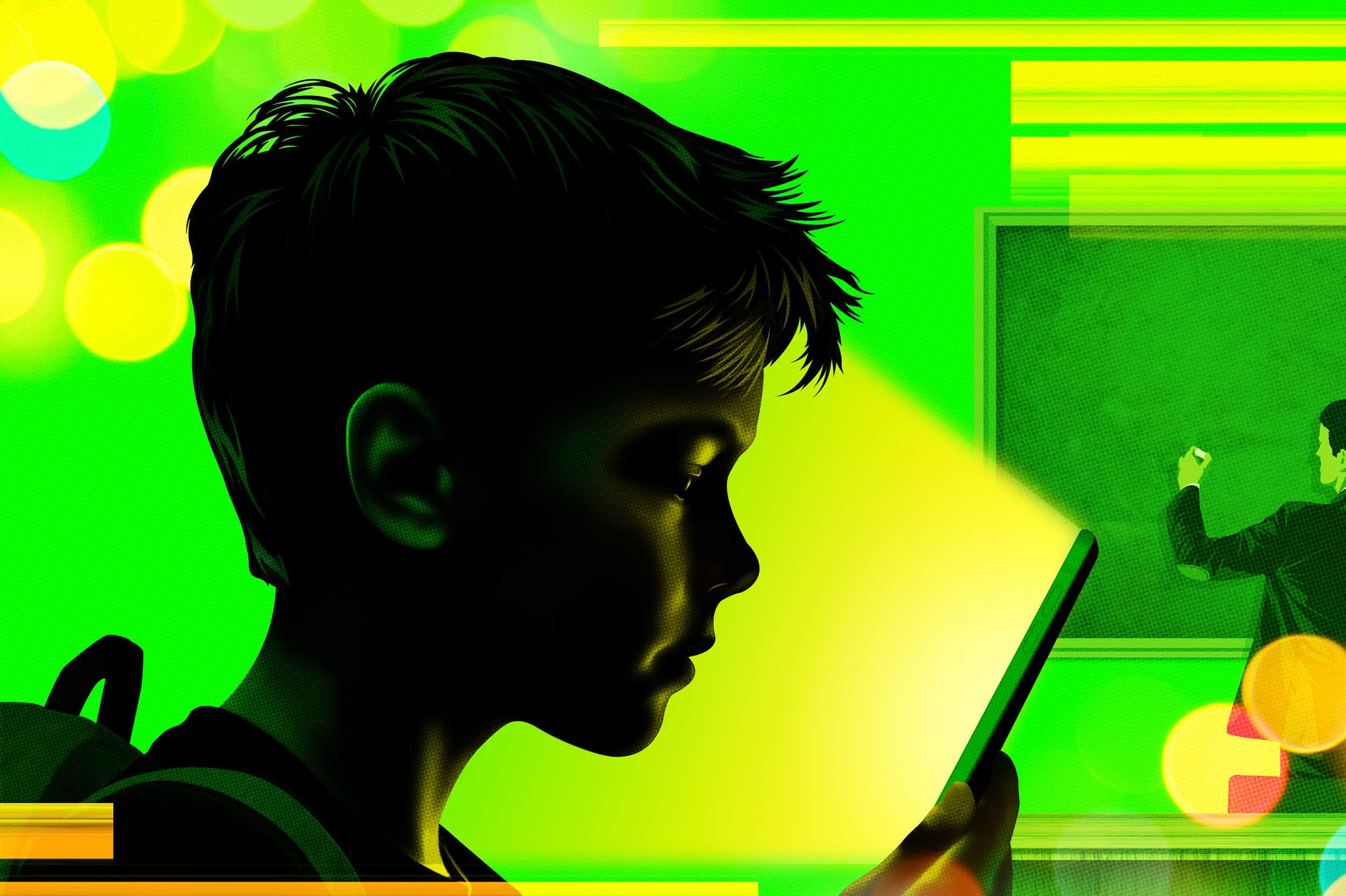 Taylor Callery illustrated a series of bold header images for Education Week’s special report: Technology Counts 2026. The articles consider arguments both for and against increased technology use in education, and how schools can find a middle ground.