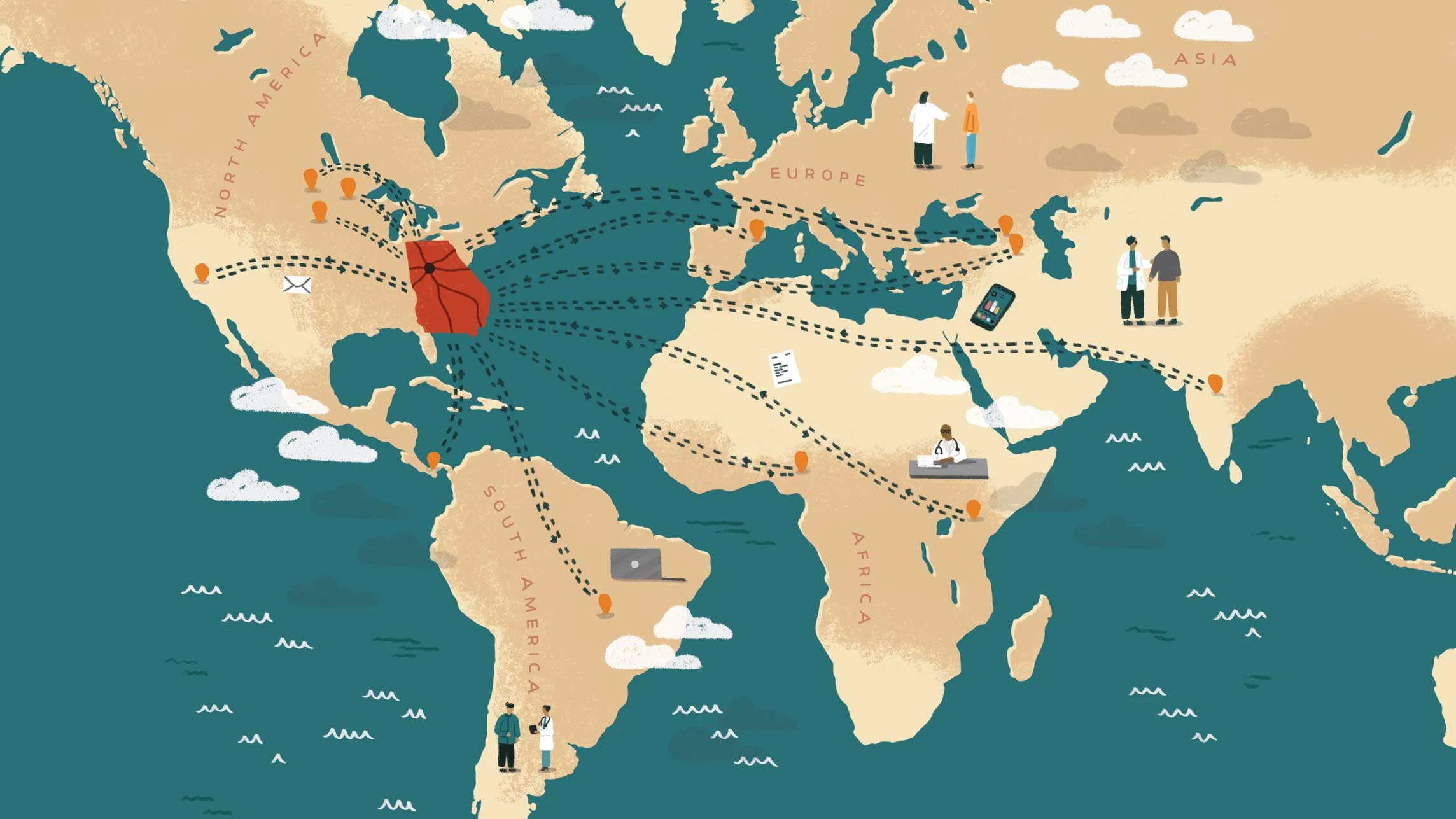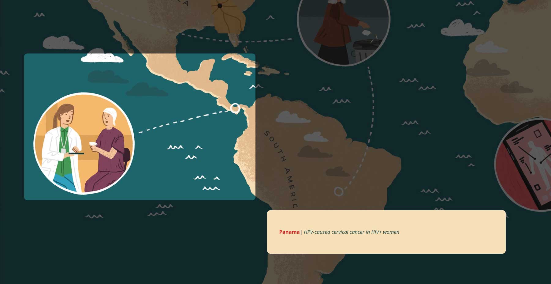 Alex Foster illustrated Winship Magazine’s Spring/Summer issue about addressing cancer globally. His illustrated map was used as the cover of the print edition, and also transformed into an interactive infographic of the types of cancer that Winship Cancer Institute are addressing throughout the world.